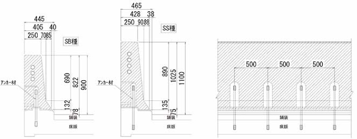 クイック壁高欄を設置するプレキャスト床版は、高欄地覆部を一体で製造します。